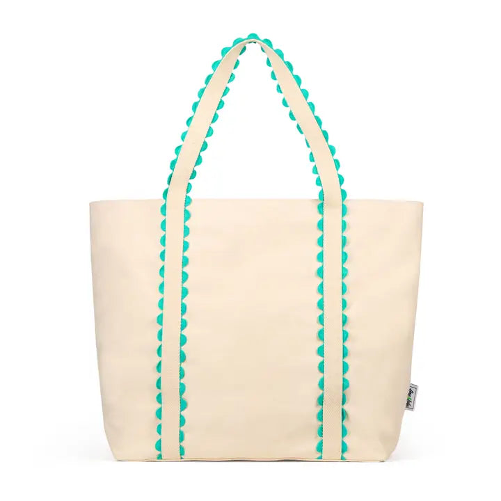 The Nantucket Beach Tote is stylish and functional, made from durable canvas with elegant scalloped edging. With spacious interior pockets, it keeps your beach essentials organized and within reach all day long. * Canvas. * Snap closure. * Exterior front slip pocket. * Interior zip pocket. * Two interior slip pockets. * Nylon liner. * 15”L x 7”W x 15”H. * 10” handle drop. * Color: Natural