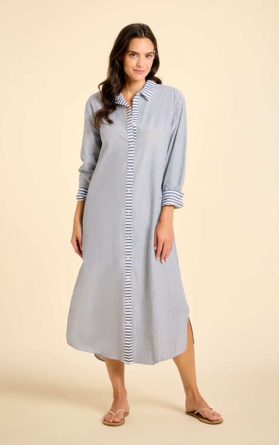 Made in a beautiful, striped cotton fabric, the Riga Dress is the perfect maxi button-down. The carefully placed buttons on the cuff and the crisp cotton fabric prove that the Riga Dress is a cover-up you will want to wear year after year.