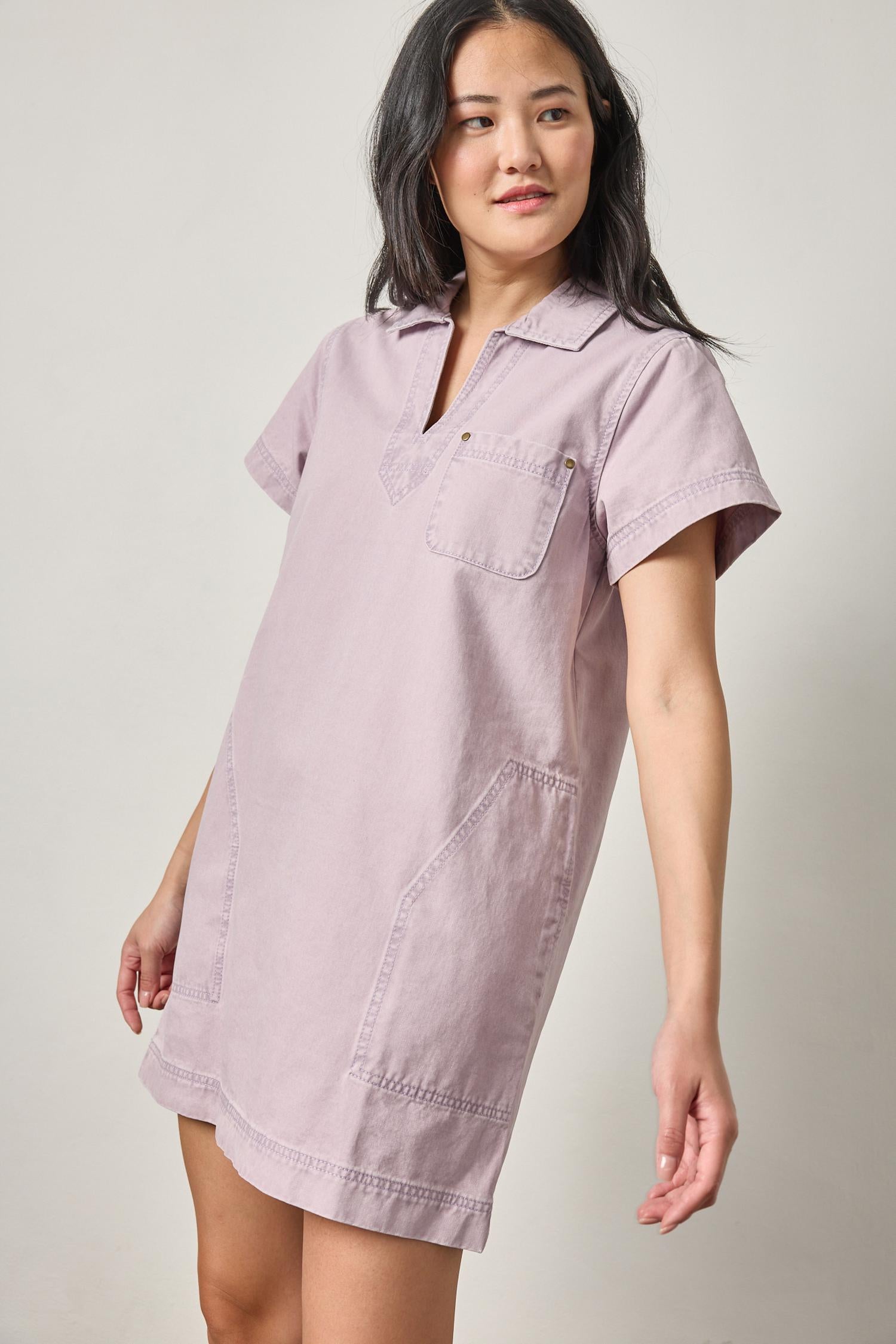 Lilla P - Twill Split Neck Collared Dress