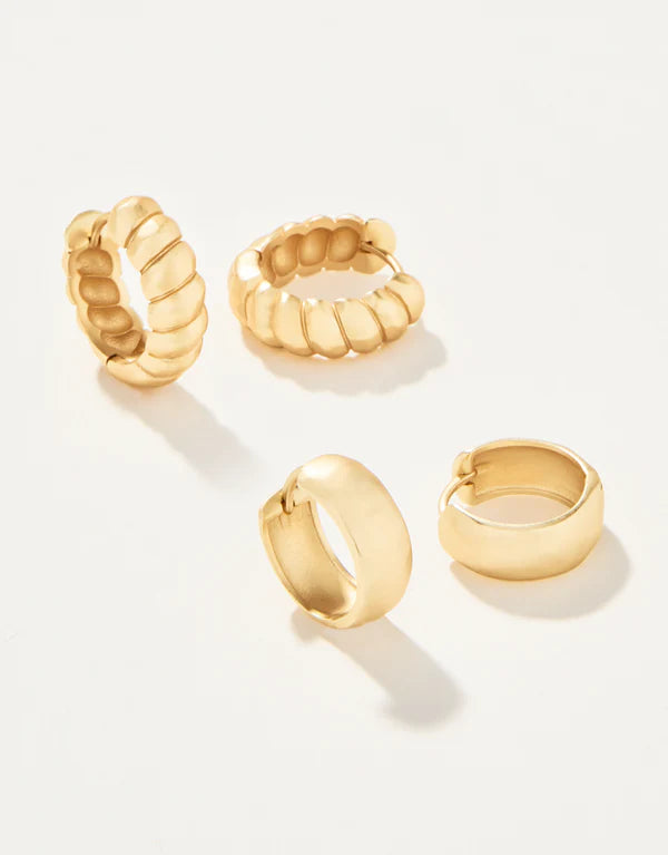 Things are always better in pairs... two pairs that is! Change up your look with a simple switch with this darling Classic Hoop Earring Set plated in 18kt matte gold or matte sterling silver.