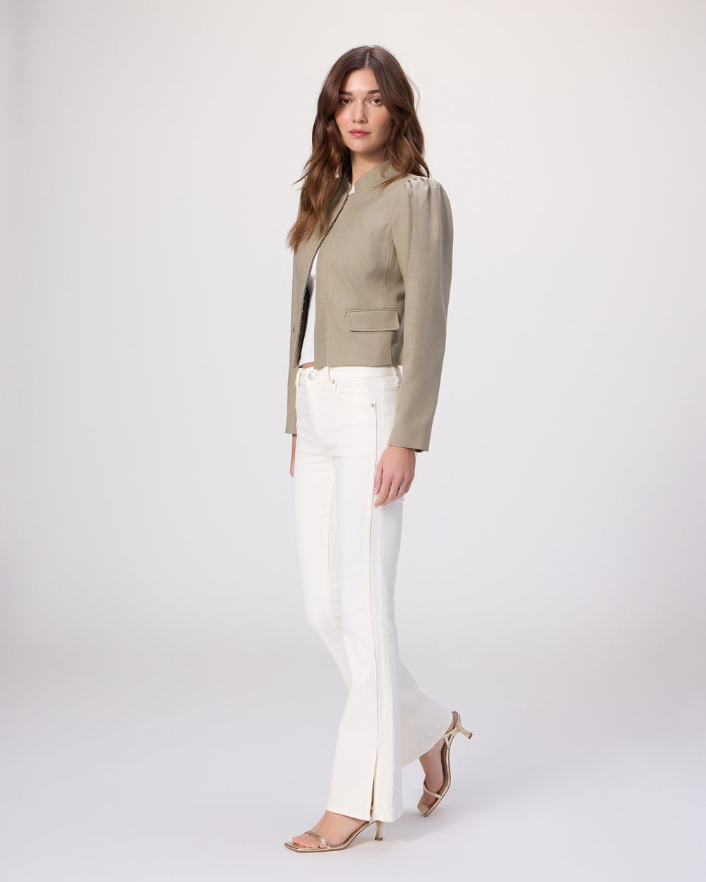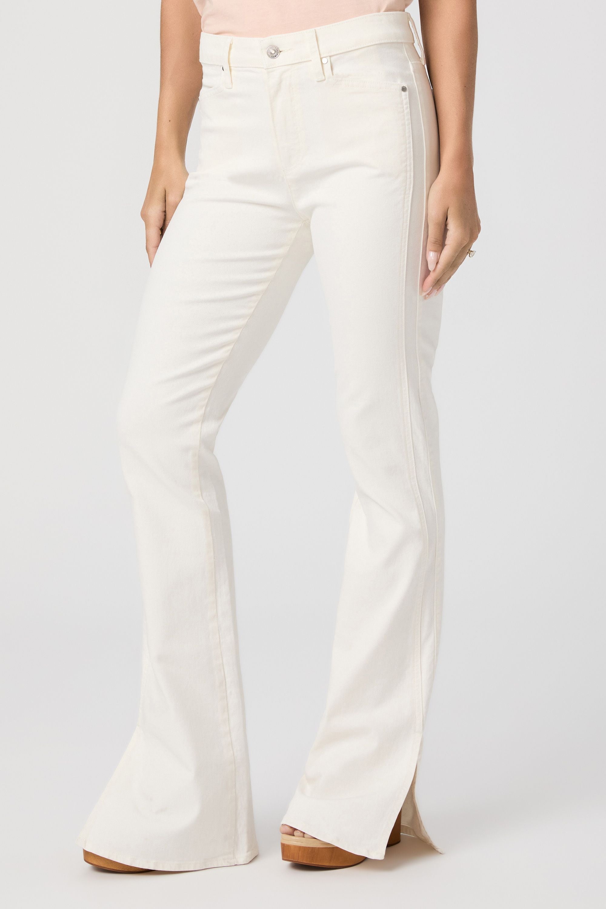 The High Rise Laurel Canyon is a vintage PAIGE style that has made a big comeback. Crafted from tonal ecru comfort stretch denim with flattering forward paneling, outseam vents, and a 32" inseam, this bootcut silhouette has plenty of coverage and the perfect amount of stretch.