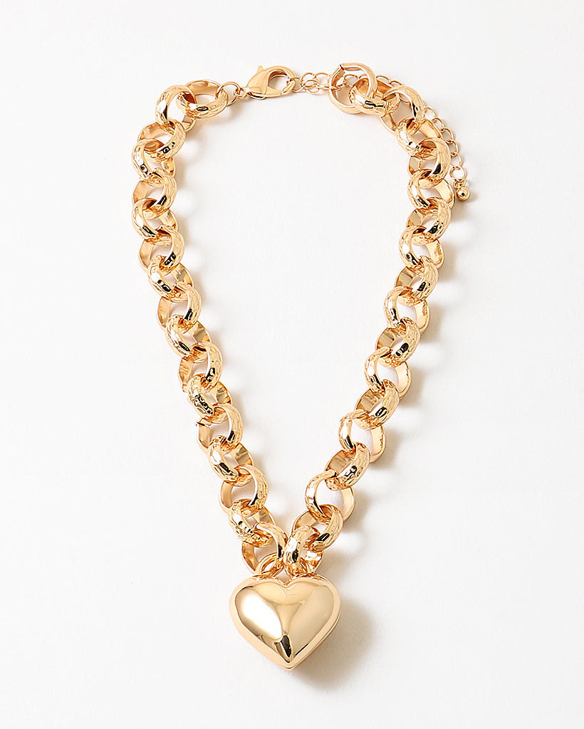 Gold Puffy Heart - Link Chain